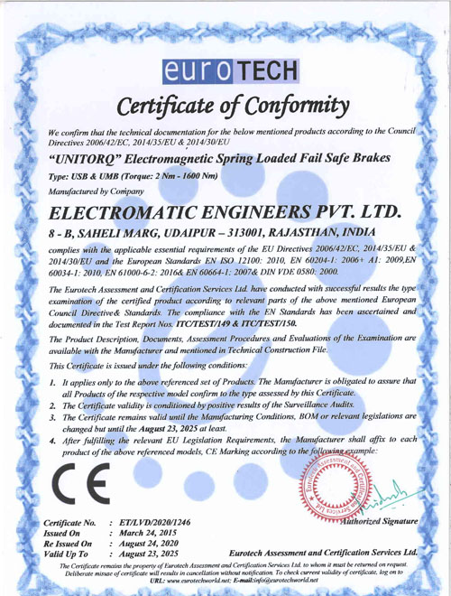 CE Certificate - EM Fail Safe Brakes