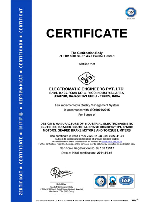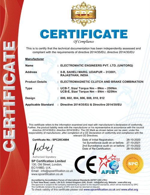 CE Certifications- EM. Clutch & Brake Combination