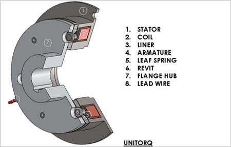 On switching off the electric power, the unique prestressed spring pulls the armature plate back into its original position and brake positively released with no residual torque.
